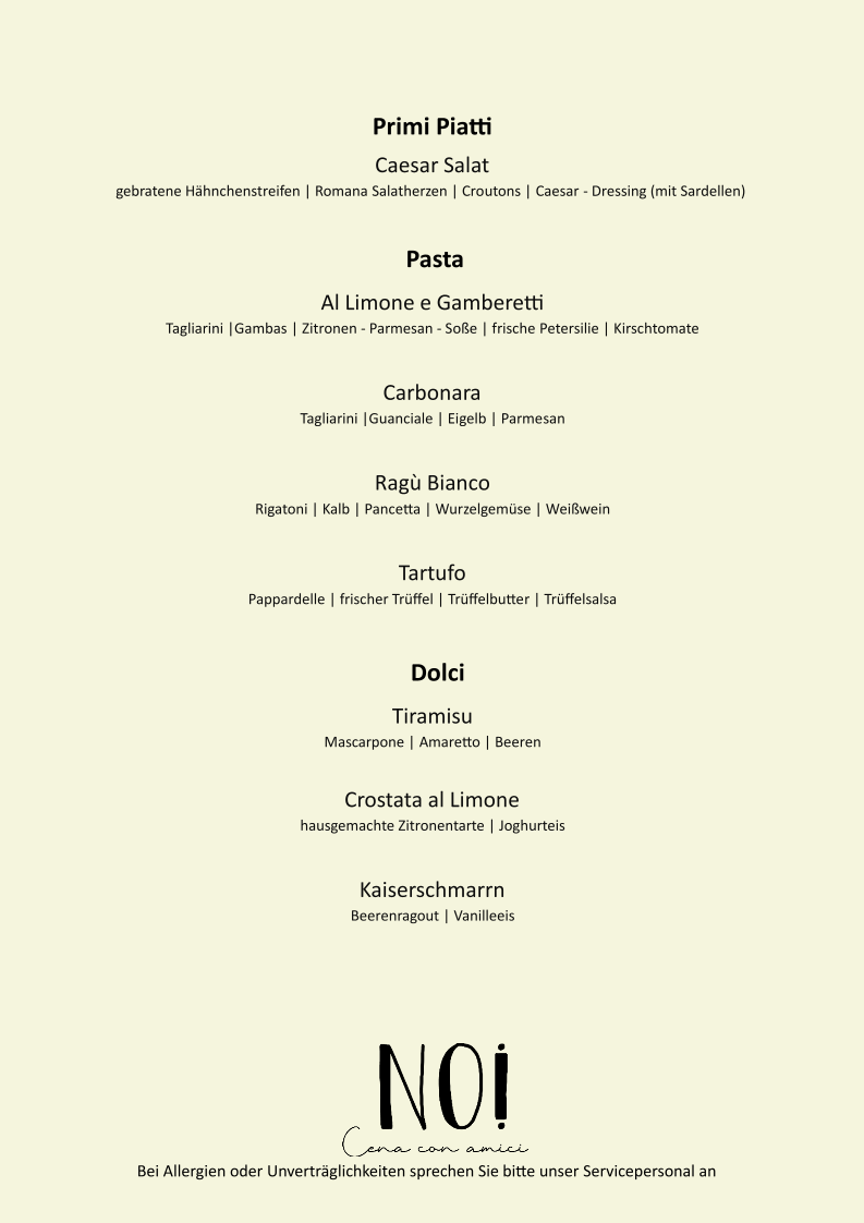 For those with a sweet tooth, the lemon tart promises a heavenly finish to your meal, while the large portions ensure satisfaction. Whether you're enjoying a romantic dinner or a casual gathering, NOI Cologne delivers an unforgettable dining experience—perfectly capturing the essence of authentic Italian cuisine.